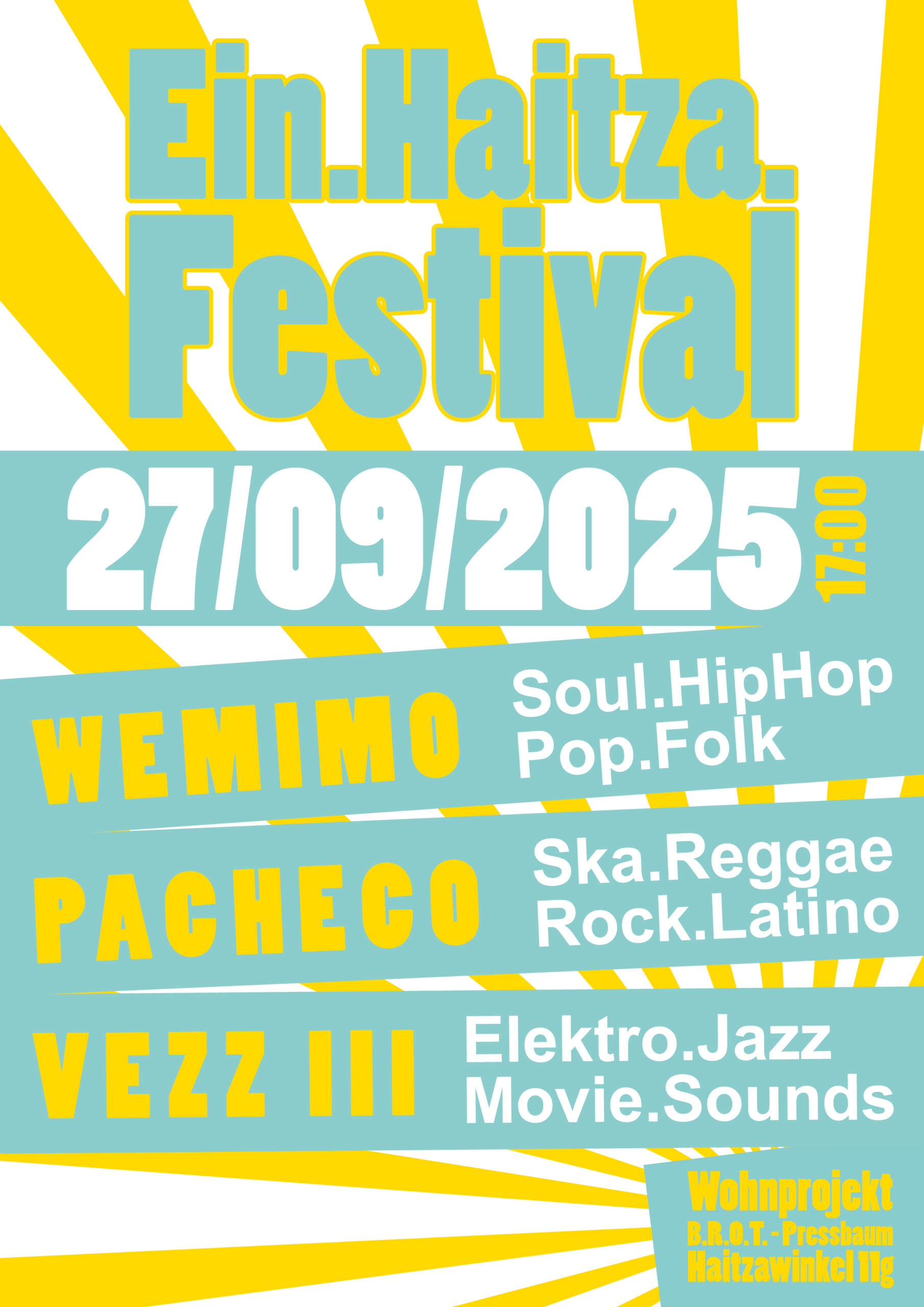 Am 27.9.2025 laden wir zum ersten und schon vorab legendärsten Musik-Festival in unserem Wohnprojekt am Haitzawinkel.